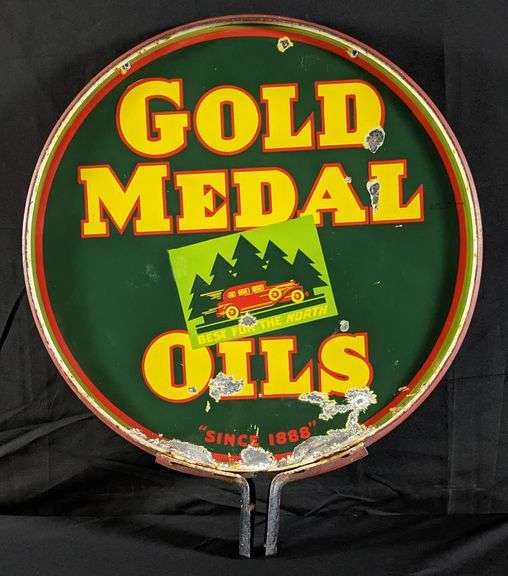 DSP, 30" DIA. GREAT GLOSS. IN ORIGINAL CURB SIGN RING. THERE IS SOME CHIPPING AND SLIGHT BENDS AT THE BOTTOM AS SEEN. SEVERAL OTHER SMALL CHIPS. THIS ITEM IS GUARANTEED TO BE OLD AND ORIGINAL. APPROXIMATE SHIPPING COST WILL BE $150 TO $325.