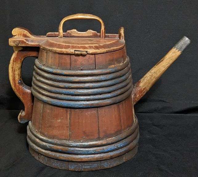 10 1/4" DIA. 13" TALL. NICE PAINT. LIGHT WEAR & PATINA. TIP OF THE SPOUT IS LEAD. THIS ITEM IS GUARANTEED TO BE OLD. APPROXIMATE SHIPPING COST WILL BE $50 TO $85.