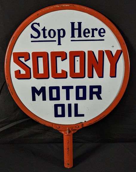 DSP, 24" DIA. APPEARS TO BE IN ORIGINAL IRON FRAME. BOTH SIDES HAVE NICE GLOSS. 1 SIDE HAS A FEW SMALL CHIPS. 1 SIDE HAS A FEW LARGER CHIPS. THIS ITEM IS GUARANTEED TO BE OLD. APPROXIMATE SHIPPING COST WILL BE $50 TO $90.