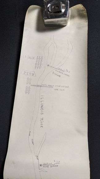 THIS IS A, 1 OF A KIND ITEM. IT IS A HAND DRAWN MAP OF THE ILLINOIS RIVER. IT IS 8 1/2" WIDE AND ABOUT 35 FEET LONG. IT WAS USED BY JACK SUDBRACK TO OBTAIN HIS RIVERBOAT PILOT'S LICENSE. UNSURE OF THE YEAR. DEFINITELY VINTAGE. THIS ITEM IS GUARANTEED TO BE OLD AND ORIGINAL. APPROXIMATE SHIPPING COST WILL BE $20.