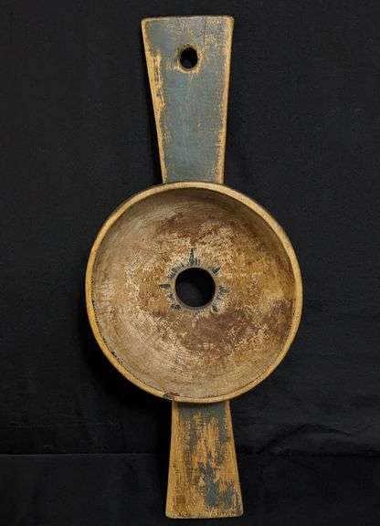 24 X 9 1/2". LIGHT WEAR & PATINA. RETAINS SOME NICE ORIGINAL BLUE PAINT. THIS ITEM IS GUARANTEED TO BE OLD. APPROXIMATE SHIPPING COST WILL BE $30 TO $45.