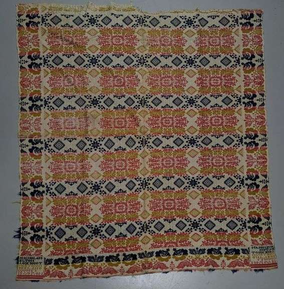 76X95". DATED 1840. THE FRINGE IS WORN OFF. THERE IS A GOOD SIZE SECTION ON ONE END THAT IS MISSING AND MENDED. OTHERWISE JUST SOME LIGHT WEAR & PATINA. THIS ITEM IS GUARANTEED TO BE OLD. APPROXIMATE SHIPPING COST WILL BE $35 TO $45.
