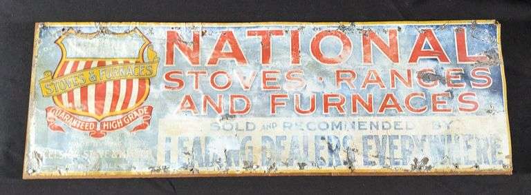 SST, 35 1/2 X 11 1/2". SHOWS WEAR, PATINA, BENDS AND NAIL HOLES. HAS BEEN MOUNTED TO A 1/4" SHEET OF PLYWOOD FOR DISPLAY. THIS ITEM IS GUARANTEED TO BE OLD AND ORIGINAL. APPROXIMATE SHIPPING COST WILL BE $25 TO $30.
