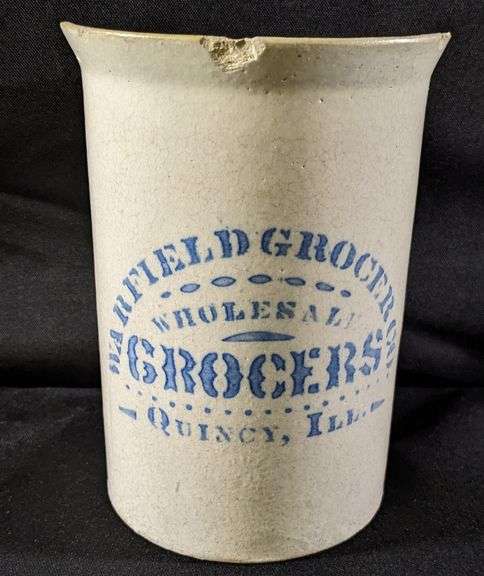6 1/2" TALL. SEVERAL SMALL CHIPS ON THE LIP. 4" HAIRLINE CRACK JUST TO LEFT OF THE HANDLE. THIS ITEM IS GUARANTEED TO BE OLD AND ORIGINAL. APPROXIMATE SHIPPING COST WILL BE $25.