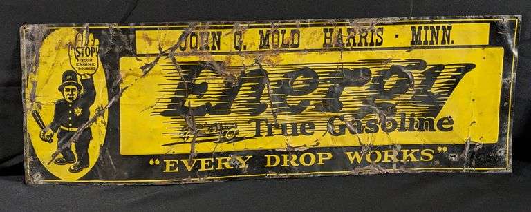 SST, 35 X 11 3/8". SHOWS WEAR, PATINA, MANY WRINKLES & BENDS. SEVERAL NAIL HOLES. THIS ITEM IS GUARANTEED TO BE OLD AND ORIGINAL. APPROXIMATE SHIPPING COST WILL BE $30 TO $45.